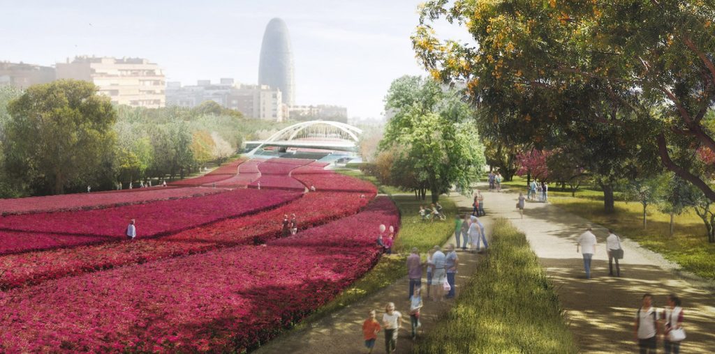 Un tast del que serà aquest espai ja es pot veure des del pont de Bac de Roda, on una gran llosa de pedra cobreix les vies de tren i impedeix veure el pas dels combois. La llosa mostra l’aspecte de la resta d’aquesta platja de vies, que s’anirà cobrint per deixar espai sobre el qual construir el que serà un dels grans parcs de la ciutat.