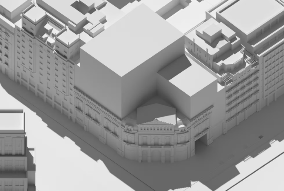 La intervenció arquitectònica se situarà en un dels punts més emblemàtics i transitats de Barcelona, a la cruïlla del passeig de Gràcia amb la Gran Via. El projecte planteja una actualització profunda de l’edifici, combinant la preservació dels seus valors patrimonials amb la incorporació de nous espais i usos.