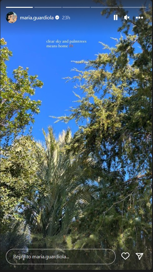 Ahir va publicar dos posts a les stories del seu instagram mostrant la vista que veu des de casa: cel blau i les palmeres del jardí. Al contrari del que hi ha a Anglaterra, on hi ha molts dies grisos i no acostuma a haver-hi aquesta vegetació exuberant pròpia del Mediterrani.