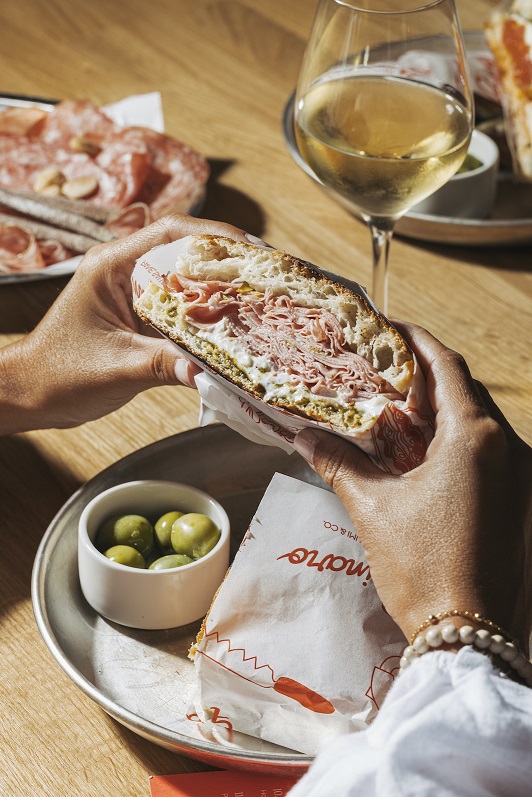 A Paninaro regna la iconica Schiacciata, un deliciós entrepà de Focaccia (una massa casolana, fina i cruixent per fora i esponjosa per dins), que se serveix farcida dels millors formatges i embotits italians, destacant la Santo Mauro amb mortadel·la, burrata i pesto de pistatxo, la Santa Rosalía amb parmigiana d’albergínia, pesto i alfàbrega, i la Santa Maria amb porxeta, patata rostida, escarmosa affumicata i salsa de