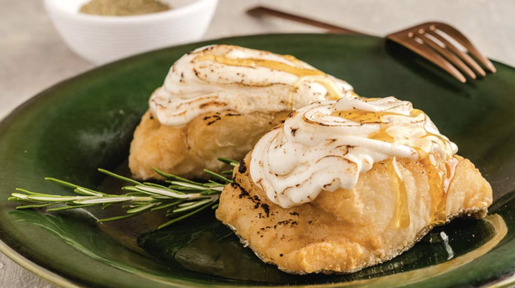 En aquesta versió, la brandada es gratina al forn amb una capa lleugera de mel i farigola, aportant un contrast entre la cremositat interior i la superfície daurada i aromàtica. És ideal com a entrant o com a plat principal lleuger
