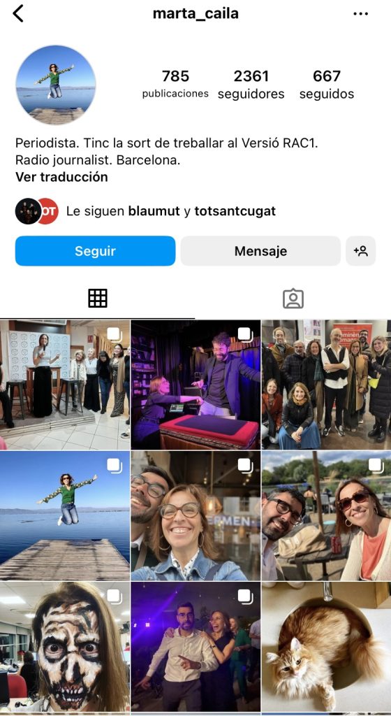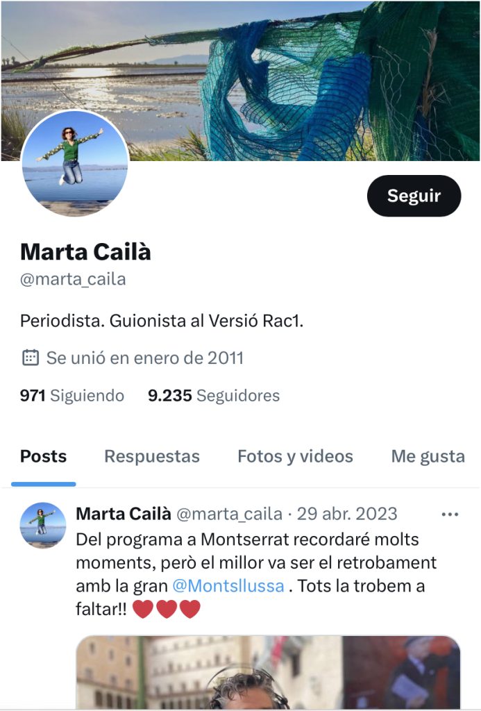 Com tots els famosos actuals, si no tenen xarxes socials pràcticament no existeixen. De igual manera,la Marta Cailà té perfil d’Instagram i Twitter, on tot i no tenir molts seguidors, la veiem activa. Compartint fotografies personals, amb el seu marit i els seus viatges i inclús, fotografies del seu món professional.